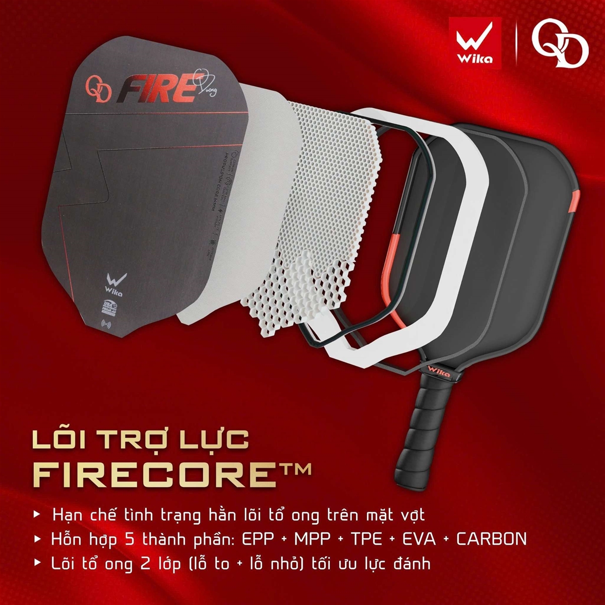 Wika x Quang Dương chính thức ra mắt QD Fire - cây vợt sở hữu lõi hoàn toàn mới và mặt vợt nâng cấp, hoàn hảo cho những cú đánh đầy sức mạnh và dứt điểm uy lực.